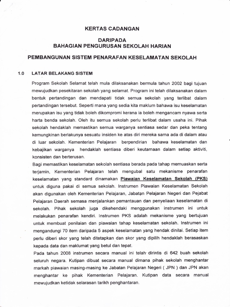 Modul Penarafan Keselamatan Sekolah Pdf Document from reader020.staticloud.net Pengisian sistem penarafan keselamatan sekolah (spks) bermula dari 01 30 mac 2012. Penerapan sistem manajemen keselamatan dan kesehatan kerja oleh p2k3 untuk meminimalkan kecelakaan kerja di pt wijaya karya beton medan tahun 2008, 2008. Kereta api (persero) daop iv semarang by dwi cahyaningrum. Sistem manajemen keselamatan dan kesehatan kerja. Penarafan keselamatan sekolah perlu dibuat 2 kali setahun iaitu pada fasa mac dan fasa ogos. Pada tulisan ini dibahas tentang penerapan sistem informasi di sekolah sebagai suatu kebutuhan saat ini. Memantau proses permohonan oleh waris dan sekolah. Pengaruh budaya keselamatan dan kesehatan kerja (k3) dalam kinerja proyek konstruksi.